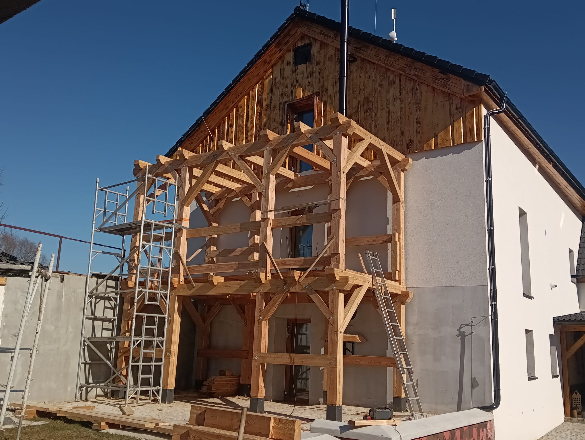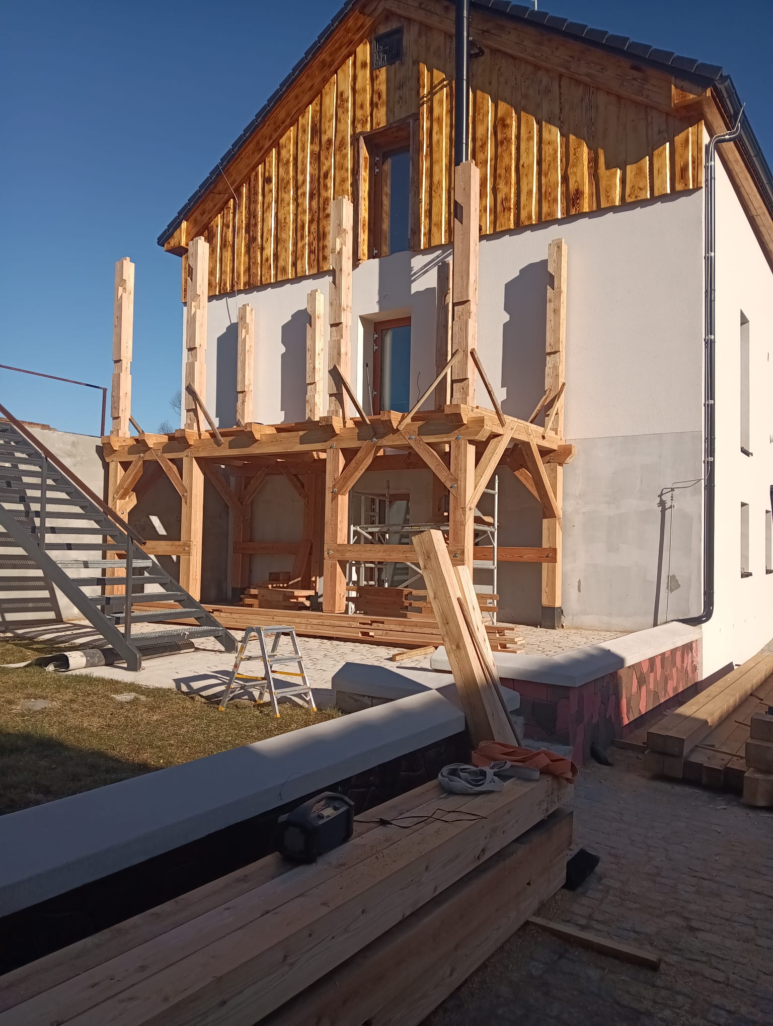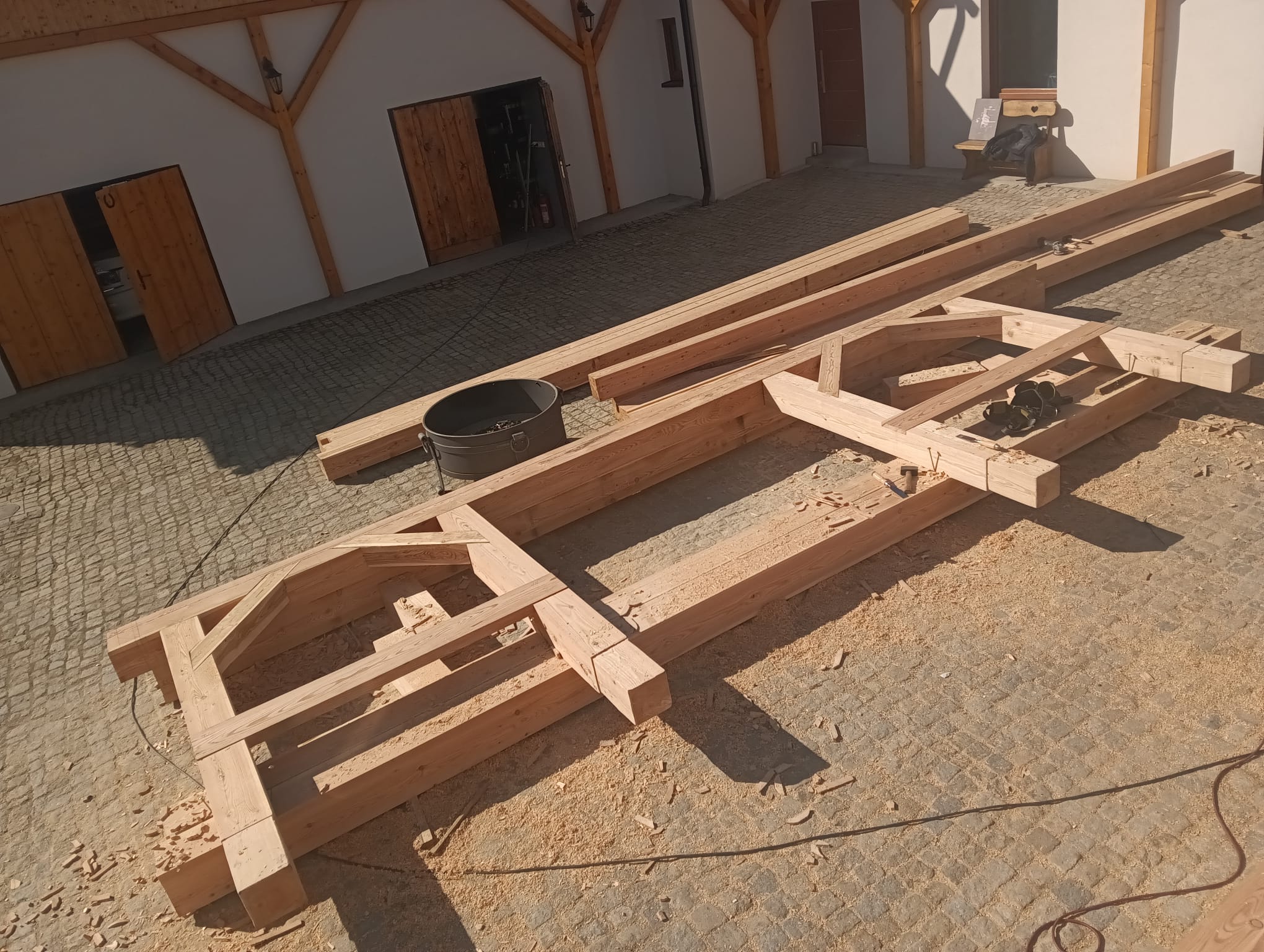 Z tesařských prací Vám můžeme nabídnout stavbu krovů, dřevěných přístřešků, zahradních domečků, zahradních altánků, garážových přístřešků a stavbu pergol. Veškeré tesařské práce provádějí naši zkušení tesaři, kteří mají mnoholeté zkušenosti. Zajišťujeme ošetření dřeva proti plísním, houbám a škůdcům. Hlavní náplní našeho tesařství je výroba a s ní spojená montáž dřevěných konstrukcí a staveb. Jejich škála je opravdu široká. Na přání vám naši zkušení tesaři vyrobí od krovů, přes stropní trámy, schodiště až po garážové přístřešky a pergoly. Nedílnou součástí činnosti naší firmy je výroba a montáž dřevěných konstrukcí.